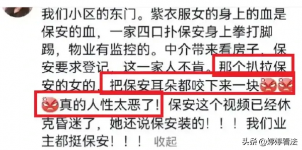 最过分的是,一个戴眼镜的女的,咬了保安的耳朵,还把那块肉揣自己兜里,跟得了个宝贝似的。