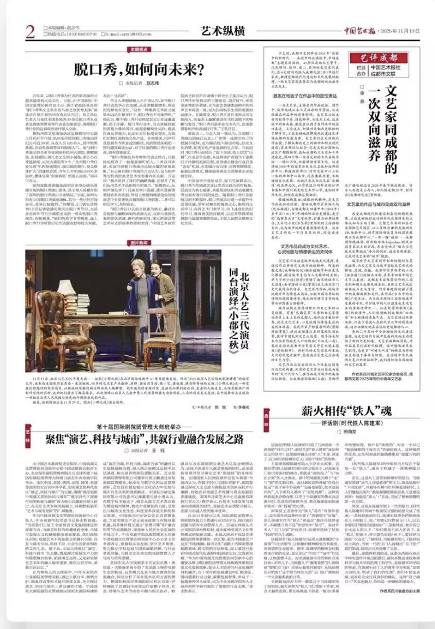中国艺术报11月19日文艺评论《文艺家同成都的一次双向滋养》提到山西籍音乐人赵迎扎根成都二十年,创作出《成都好巴适》等歌曲(文/李燕)