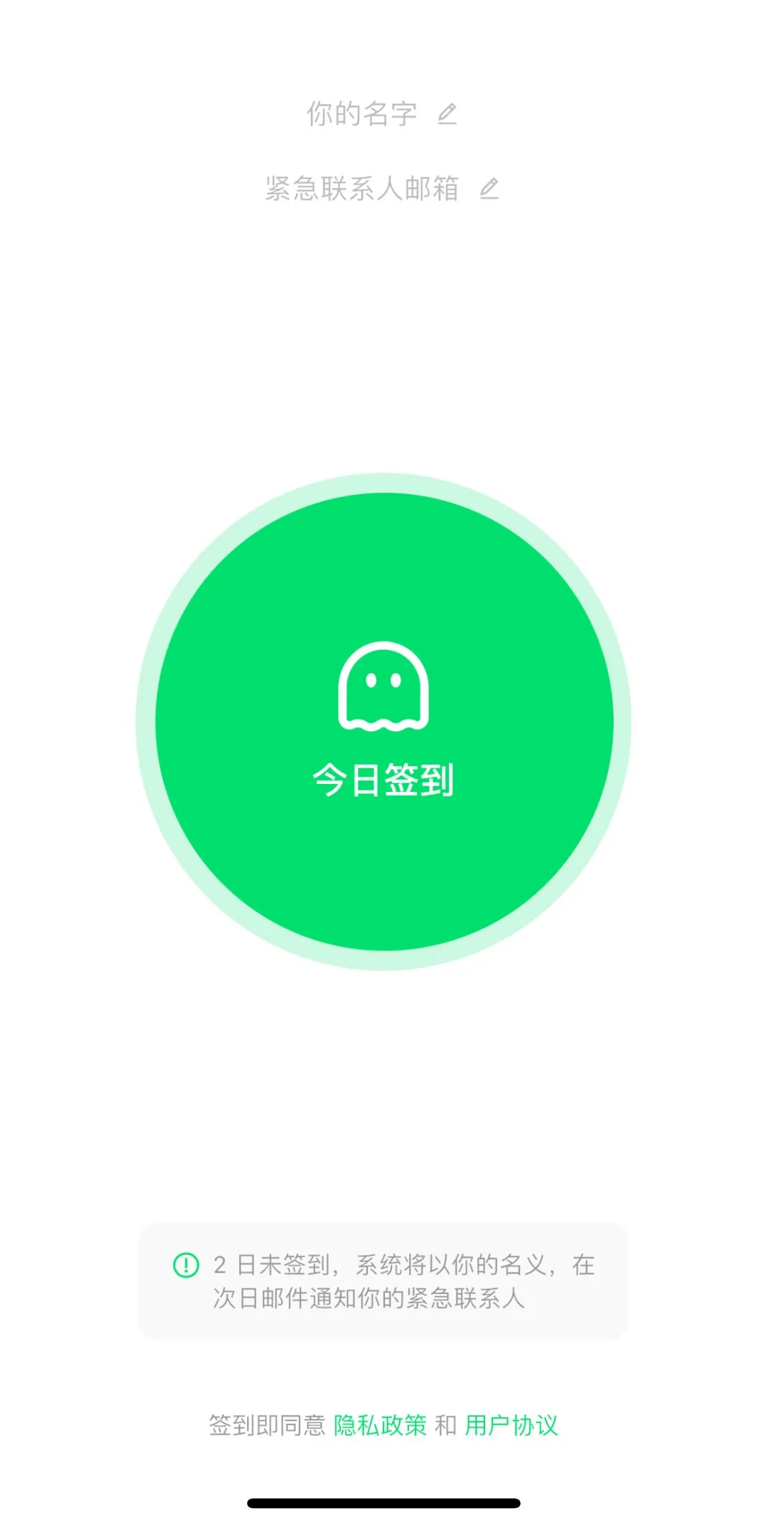 据介绍,该应用是为独居人群打造的轻量化安全工具,用户需要设置紧急联系人并签到,若连续多日没在应用内签到,系统将于次日自动发送邮件告知紧急联系人。