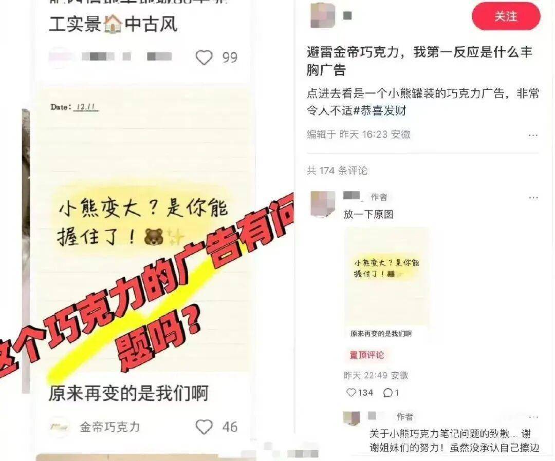 1月12日,该内容已经不可见。当日中午,品牌方通过社交平台发布致歉声明,表示是因为之前有用户反馈,复产后的金色小熊比小时候小了,品牌方便发布了产品笔记,但因为开启的小红书千帆投放有,这个功能会自动拆分、组合笔记的图片、标题等元素,导致系统自动优化后生成了算法视角的大字报笔记并对外展示。原本的内容是基于部分用户询问小熊是不是缩小了,感觉和童年购买的尺寸不同,品牌原意是讲述产品按原版1:1复刻、没有缩减尺寸的事实。
