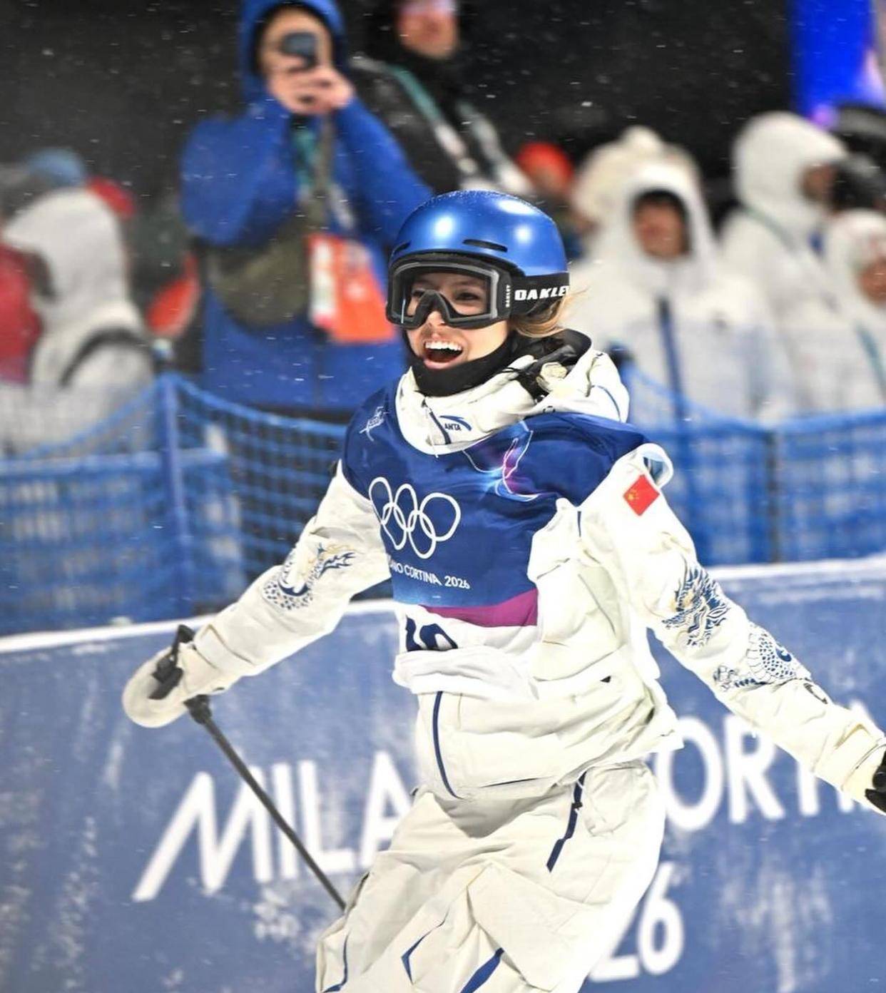 没有近期比赛数据参考,没有针对性的系统训练,连她自己赛前都没下定决心要不要比。 直到在米兰先拿了坡面障碍技巧的银牌后,她才一拍脑袋:来都来了,干嘛不试试?
