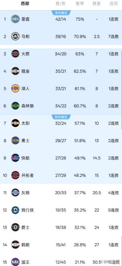 湖人队的险胜和掘金队的大胜,这两场比赛的结果在2026年2月21日这个夜晚产生了奇妙的化学反应,直接作用于NBA西部联盟的积分榜。湖人队拿下这场关键的卡位战后,战绩更新为34胜21负,继续稳固在西部第五的位置。而掘金队取得这场令人瞠目结舌的大胜,战绩变为36胜21负。值得注意的是,由于休斯顿火箭队在2月20日击败黄蜂后升至西部第三,而掘金队在此之前曾因输给快船而跌至第四,因此掘金队在本场比赛后的胜利,让他们在战绩上实现了对火箭队的成功反超,重新夺回了第三的位置。