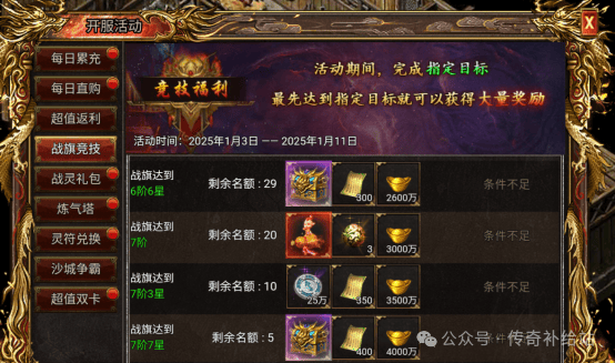 以上就是上古战歌(同款游戏:百将争霸、热血轩辕、魔神纪元)三端互通折扣手游中的战旗竞技明细攻略,上古战歌斗气异火版本新区关注上图右下角【传奇补给站】,我们下期再见。返回搜狐,查看更多