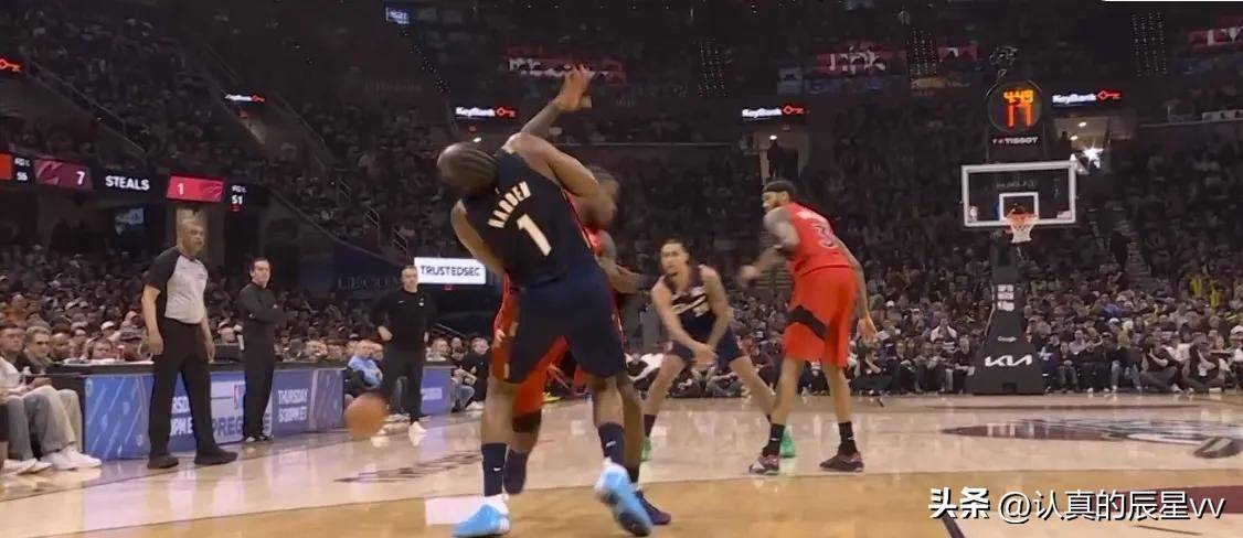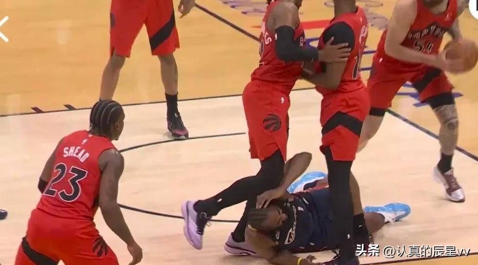 然而,这场比赛最令人诟病的并非双方球员的表现,而是裁判组反复无常的吹罚尺度。在拼抢篮板过程中,哈登被三名猛龙球员围堵,有人拉拽球衣,有人用手推搡,甚至有人击打头部,导致他整个人重重摔倒在地,但近在咫尺的裁判却没有任何表示。