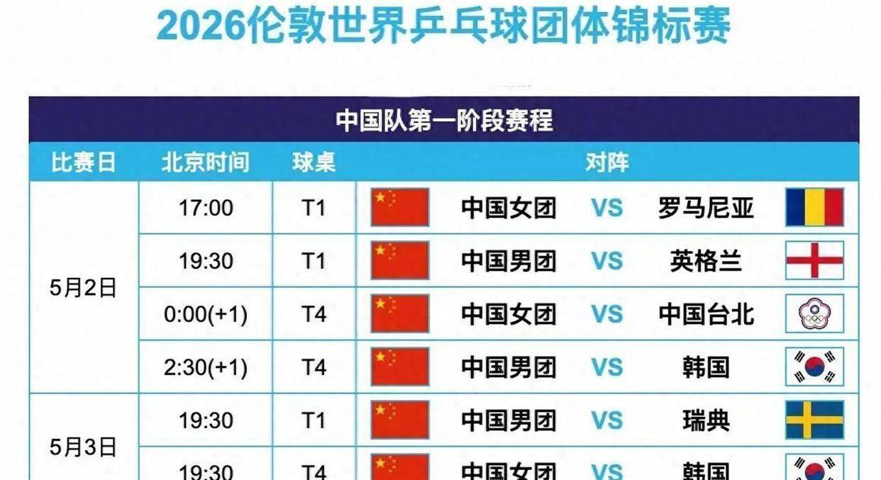 国乒队在出征前将会进行直播互动,让球迷了解国乒备战情况以及做赛前对手分析。 队伍计划在成都基地一直封训到4月24日,4月25日全队将离开成都返回北京总部,在北京做最后的调整和准备工作。 4月27日,中国乒乓球队代表团将正式飞往伦敦,开启这场百年世乒赛的征程。 伦敦世乒赛将于4月28日至5月10日举行。 国乒男女队的首场比赛都将在5月2日进行。 根据小组赛赛程,国乒女队将在北京时间5月2日17点率先出战,对阵罗马尼亚女团;国乒男队在19点30出场对阵东道主英格兰男团。返回搜狐,查看更多
