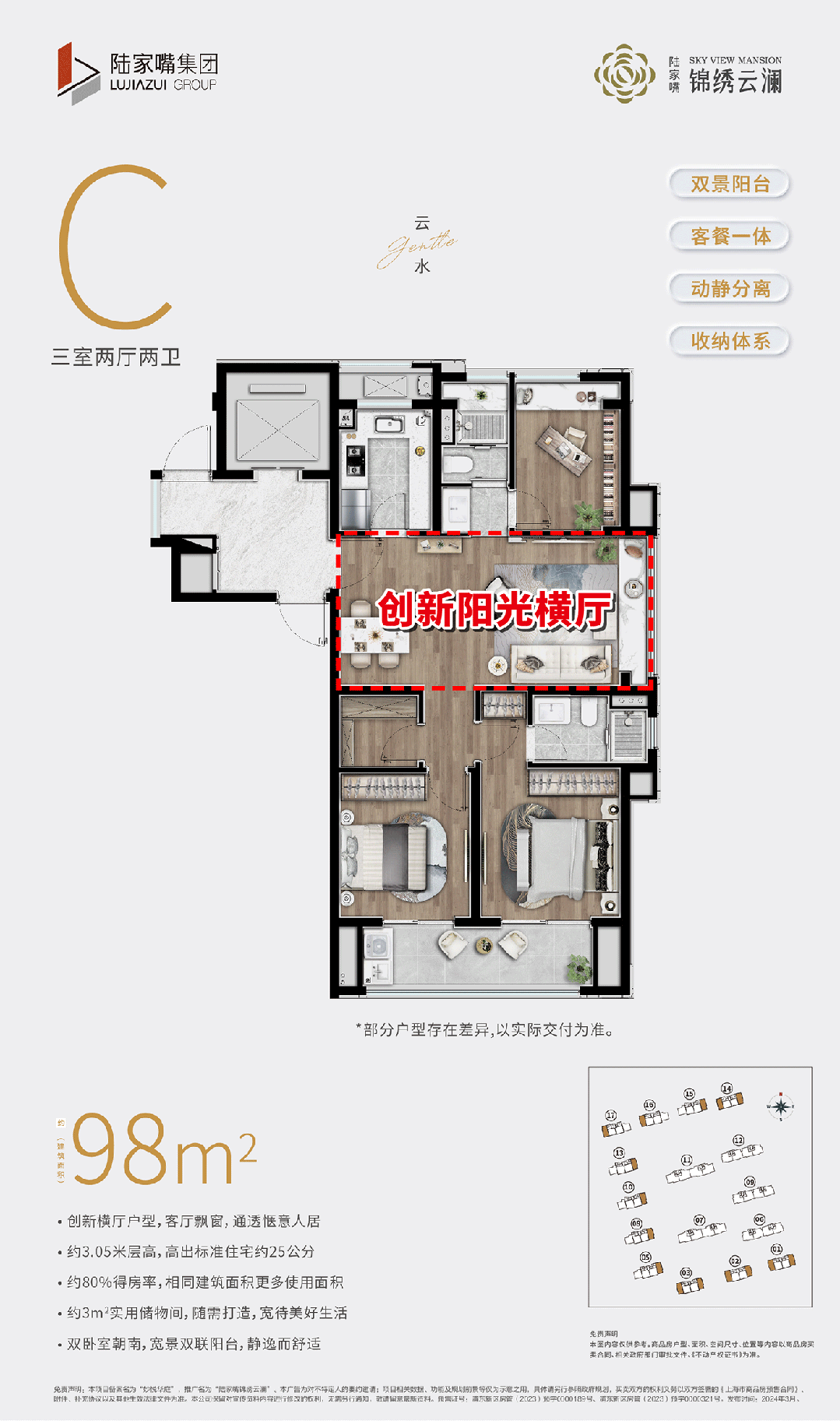 并且,陆家嘴打造的约52万方综合体由一条空中连廊无缝链接川沙九六广场与锦绣云澜,从家到商场形成专属归家动线。